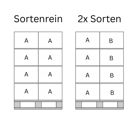 Die Waren können sortenrein sowie in zwei Artikelvarianten angeliefert werden.